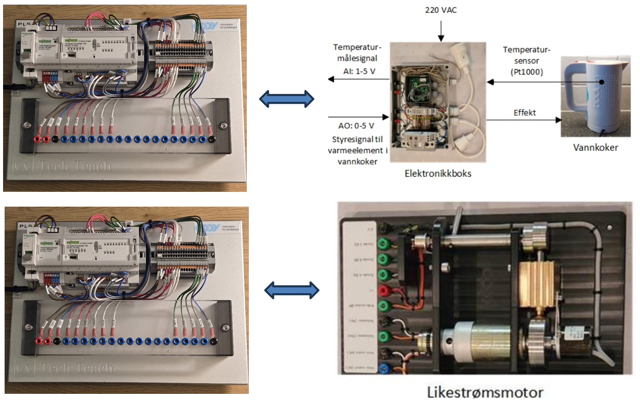 Figur 1 PLS-ene kan koples til likestrømsmotorer for turtallsregulering og vannkoker for temperaturregulering, se figur 2.