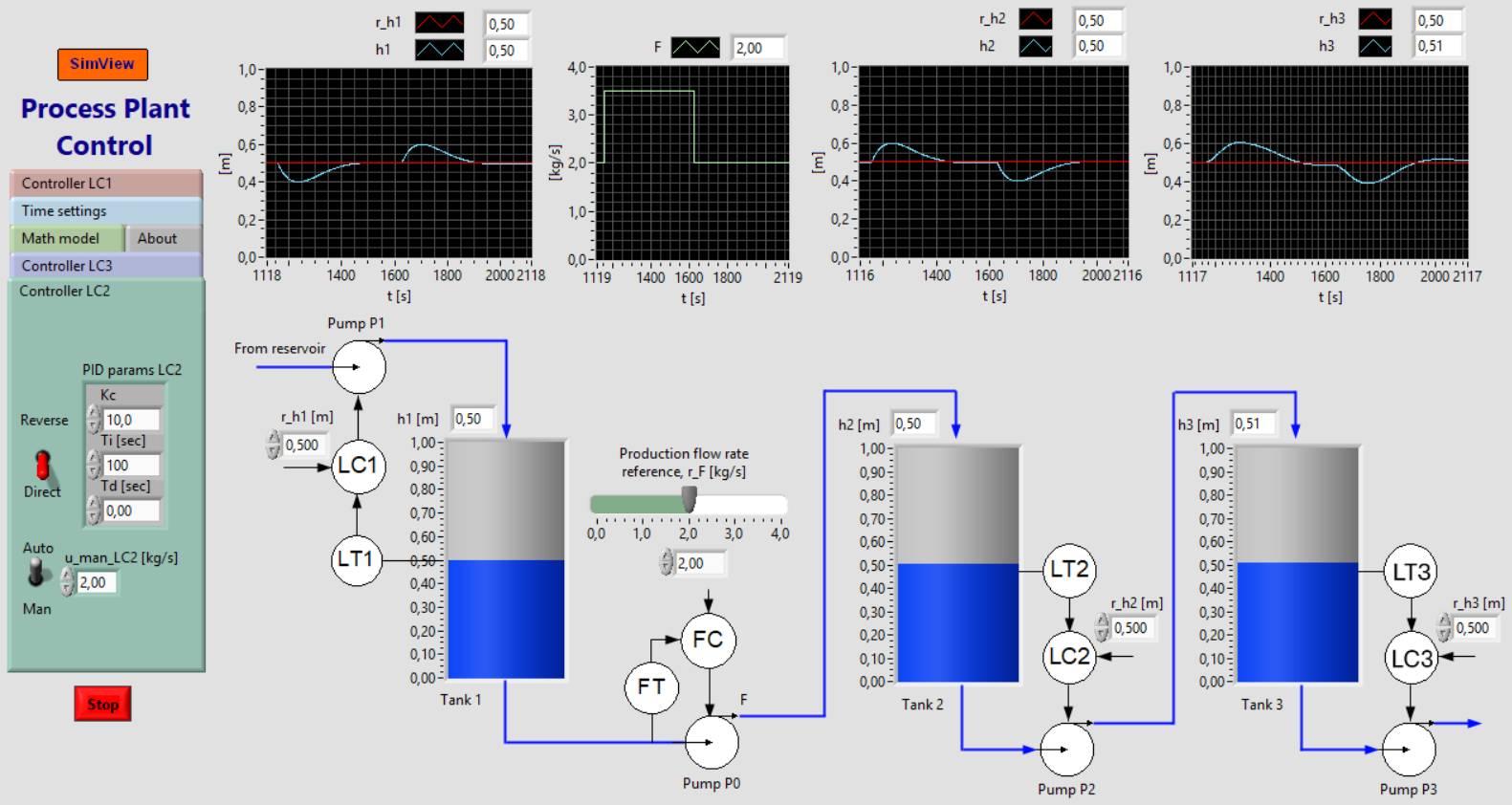 Process Plant ControlSnapshot of the front panel of the simulator: