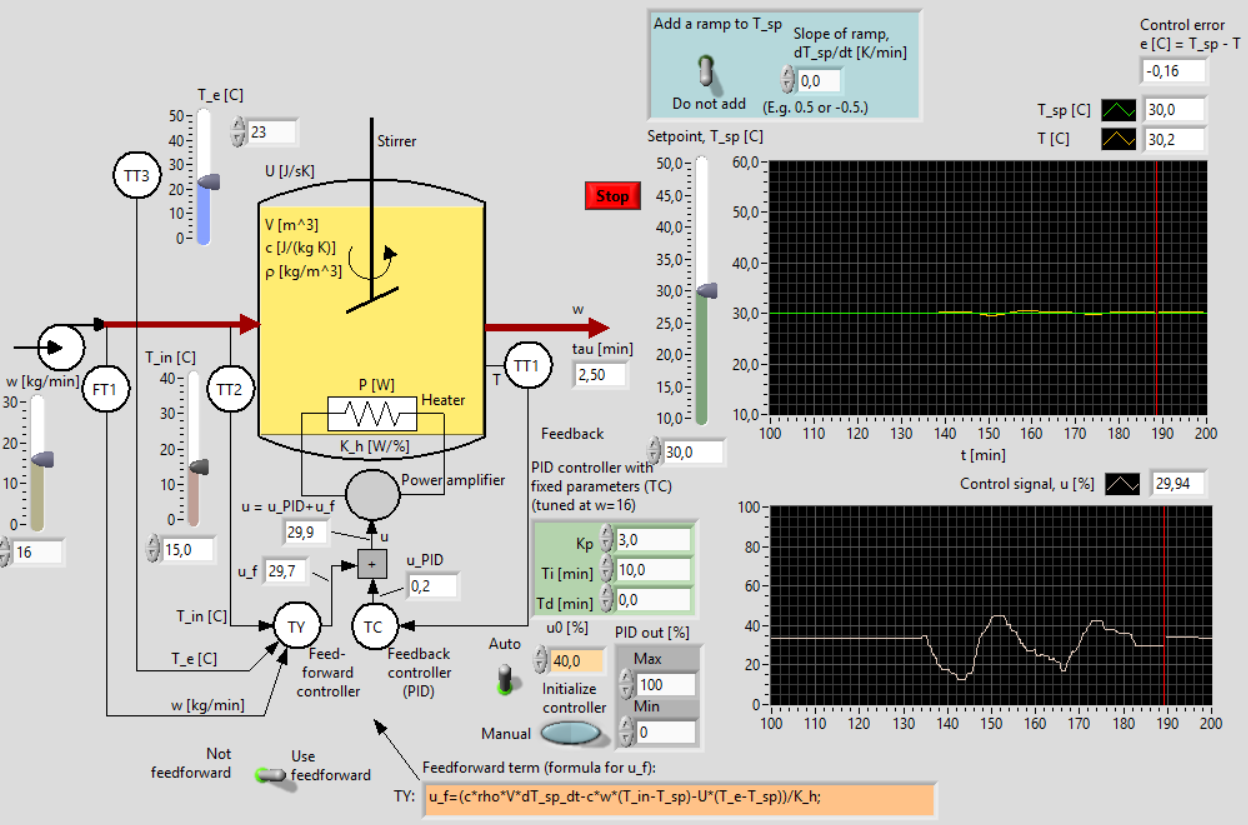 2. Feedforward control at disturbance changes: Change the inflow temperature. Is the control error be reduced by introdusing feedforward control?
